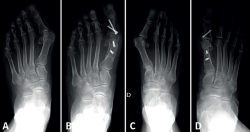 Esta técnica suele ser complementada con una osteotomía de falange proximal del primer dedo (Akin) para corregir la rotación del primer dedo. Algunos ejemplos de pacientes intervenidos en nuestro centro se recogen en la Figura 3.