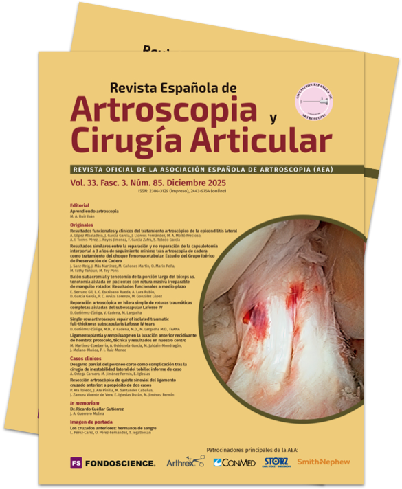 Revista Española de Artroscopia y Cirugía Articular está distribuida bajo una licencia de Creative Commons Reconocimiento-NoComercial-SinObraDerivada 4.0 Internacional.