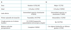 Los criterios de exclusión fueron: inestabilidad posterior o multidireccional, ISIS < 3 sin hiperlaxitud, defectos óseos > 20%, enfermedades sistémicas o situaciones especiales que comprendan mayor riesgo de luxación, como epilepsia, luxaciones voluntarias y/o la falta de seguimiento.
